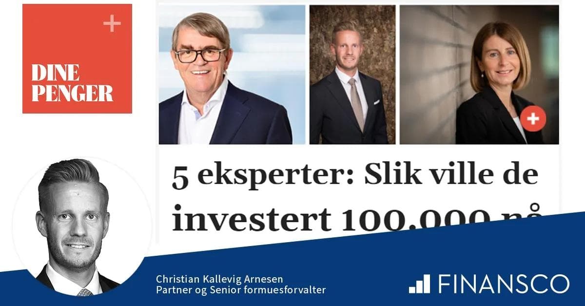 Finansco bidrar, sammen med blant annet Pål Ringholm (Sparebank 1 Markets) og Jan P. Sissener, med våre råd om hvordan man bør plassere kr 100.000 i dagens marked. Artikkelen kan leses bak betalingsmur hos både Dine Penger og VG+.