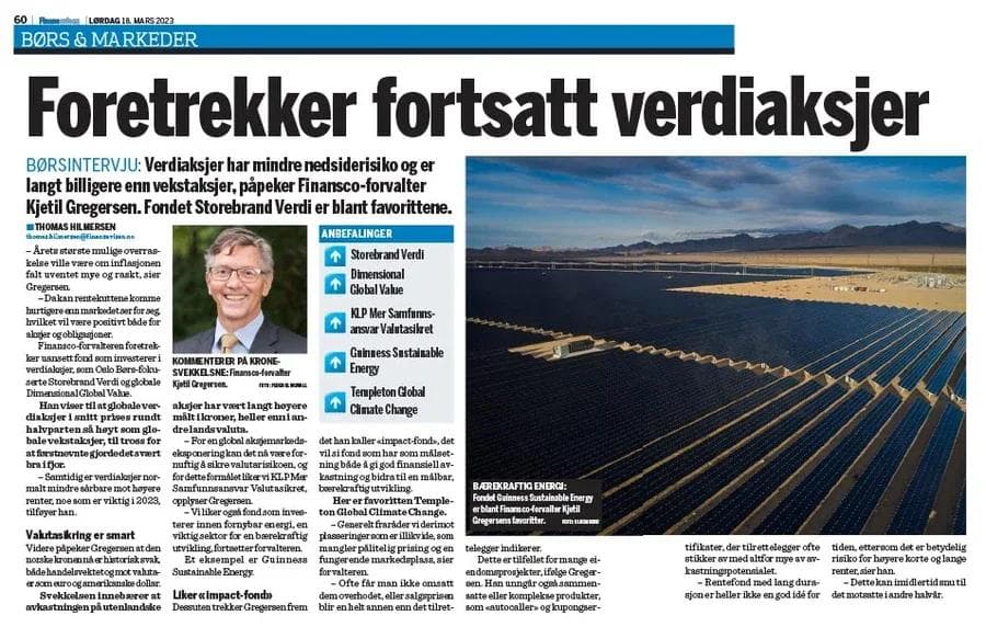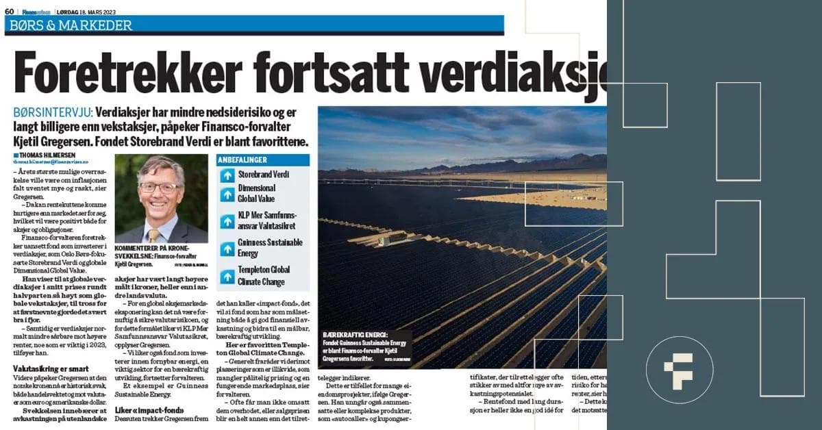 BØRSINTERVJU: Verdiaksjer har mindre nedsiderisiko og er langt billigere enn vekstaksjer, påpeker Finansco-forvalter Kjetil Gregersen. Fondet Storebrand Verdi er blant favorittene.