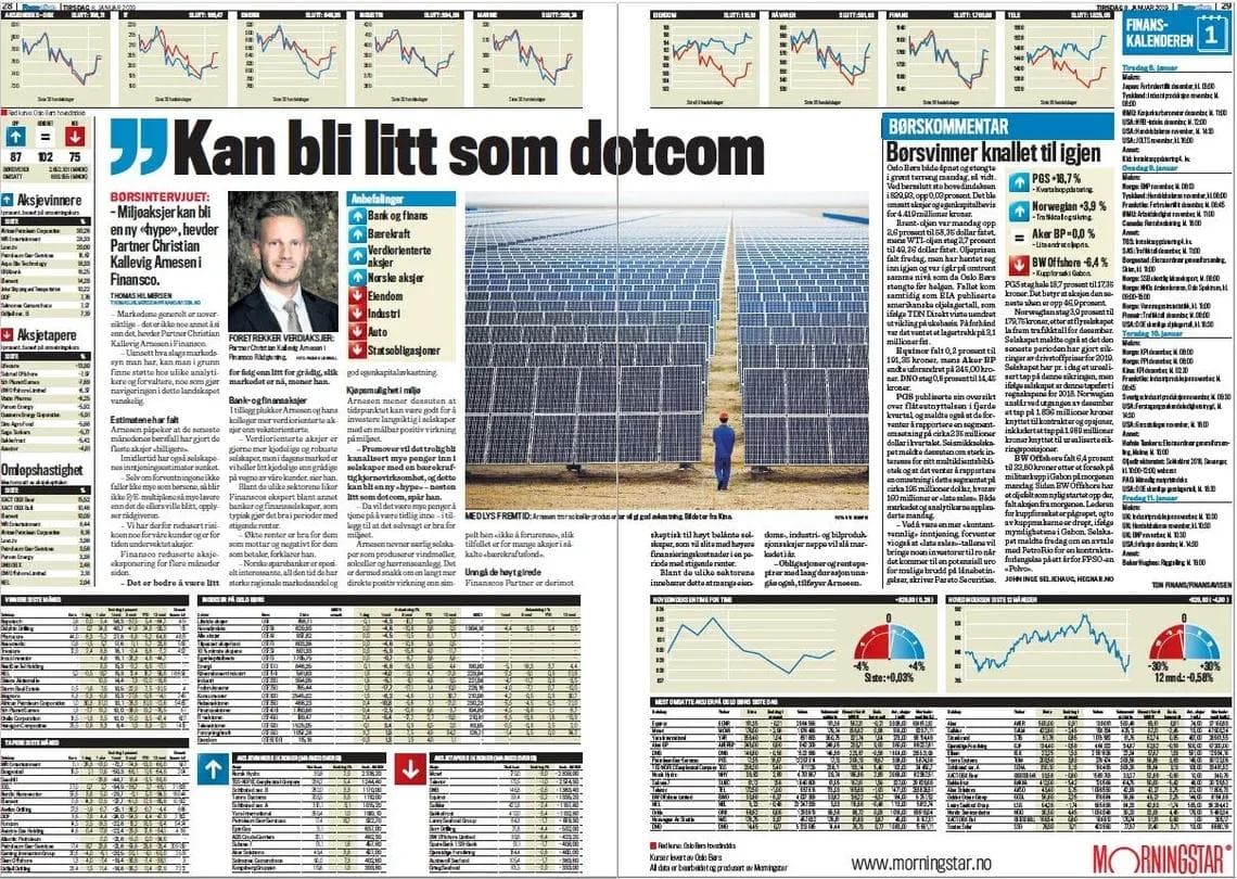 Miljøaksjer kan bli en ny «hype». – Fremover vil det trolig bli kanalisert mye penger inn i selskaper med en bærekraftig kjernevirksomhet, sier partner Christian Kallevig Arnesen i Finansco.