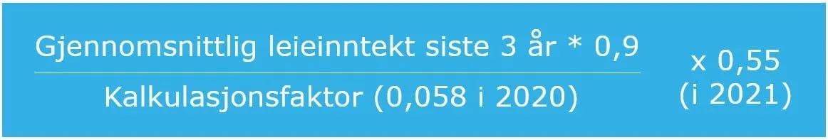 Formuesverdien på næringseiendom som er eid privat, skal etter dagens regler settes til 55 % av en beregnet utleieverdi. Grunnlaget for utleieverdien fastsettes til gjennomsnittet av samlet brutto utleieinntekt for de tre siste inntektsårene, fratrukket sjablongmessige eierkostnader på 10 % og dividert på en kalkulasjonsfaktor. Kalkulasjonsfaktoren (tilsvarende en yield for formuesskatteformål) justeres hvert år, og var i 2020 på 0,058 (tilsvarende en tenkt yield på 5,8 %).