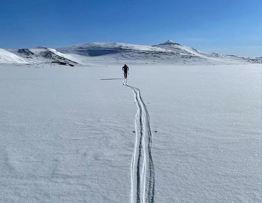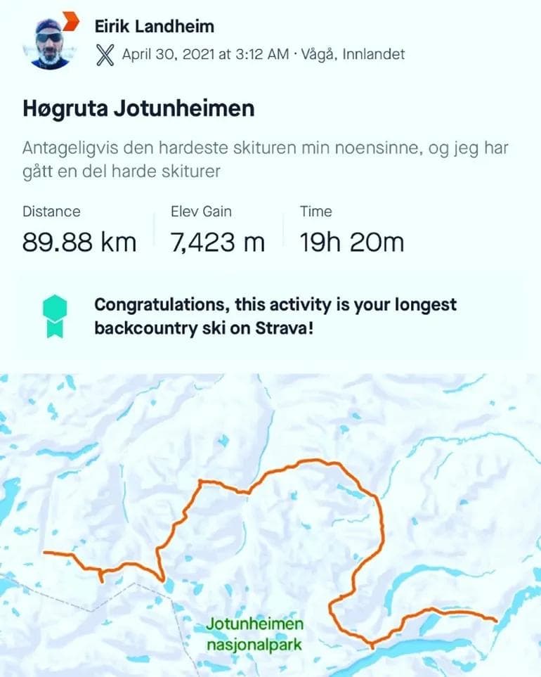 Min turkamerat, Morten Eide Pedersen, og jeg bestemte oss for å prøve denne turen – og at vi skulle gå den på én (!) dag. Morten er ofte å se på tv-skjermen gjennom vinteren, hvor han ofte er å finne i toppen av langdistansecupen «Ski Classics» – der skirenn som Vasaloppet, Marcialonga og Birkebeinerrennet inngår. En sprek turkamerat med andre ord.