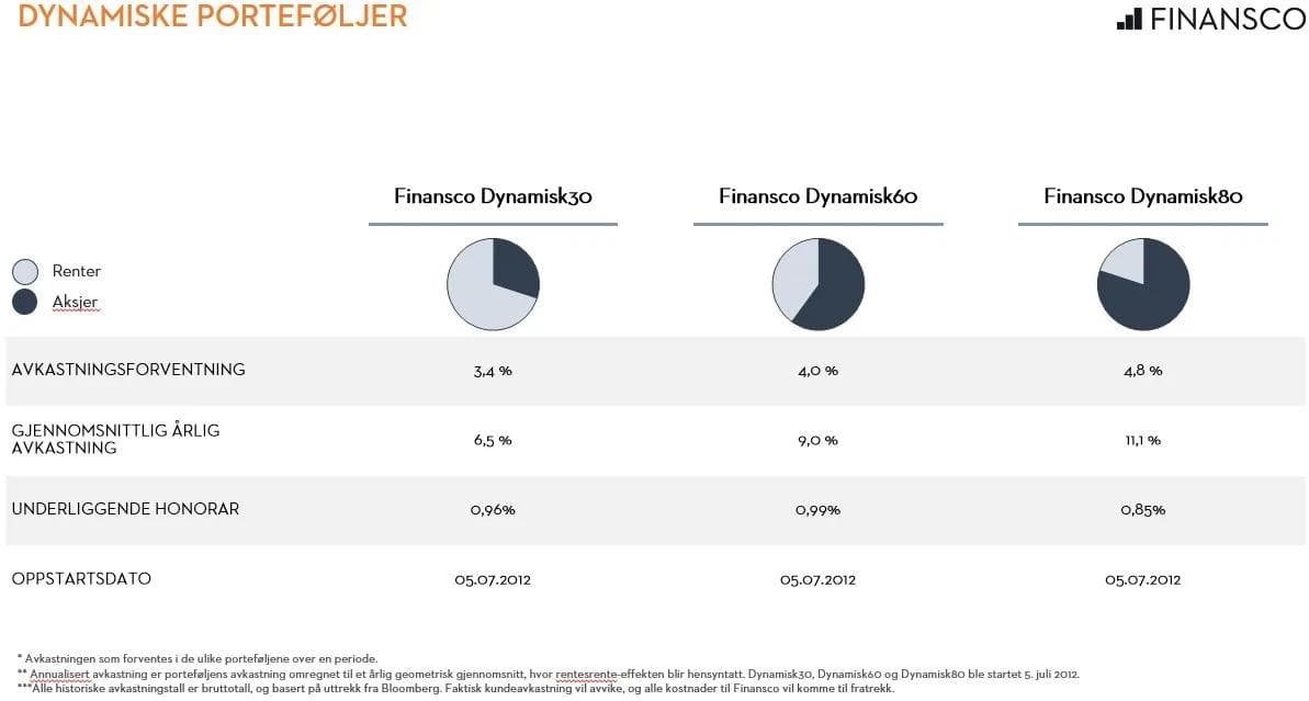 - Finansco Dynamisk 30: 3,40 % (Faktisk levert årlig avkastning 6,5 %)