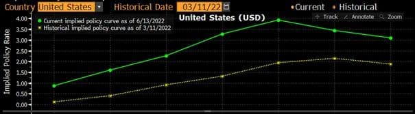 Basert på markedsprising forventes det at FED skal heve renten fra dagens 0,75 % til nesten 4 % i løpet av så kort tid som 12 måneder, for deretter å falle svakt tilbake. Jeg er usikker på om markedet er forberedt på en så sterk renteoppgang – på så kort tid.