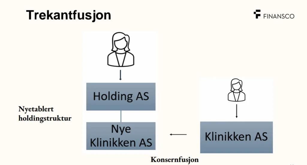 – En trekantfusjon innebærer i praksis at man oppretter en ny konsernstruktur, og fusjonerer det eksisterende selskapet inn i denne. Gjort riktig er dette en skattefri prosess, selv om det er noen kostnader knyttet til gjennomføringen, fortsetter hun.