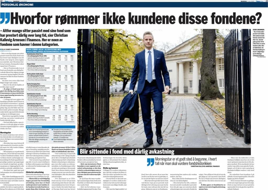 – Altfor mange sitter passivt med sine fond som har prestert dårlig over lang tid, sier Christian Kallevig Arnesen i Finansco.
