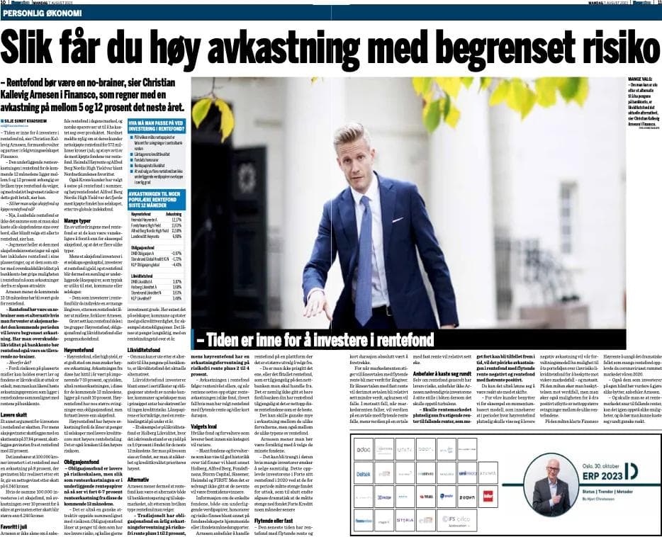 Slik får du høy avkastning med begrenset risiko – Rentefond bør være en no-brainer, sier Christian Kallevig Arnesen i Finansco, som regner med en avkastning på mellom 5 og 12 prosent det neste året.