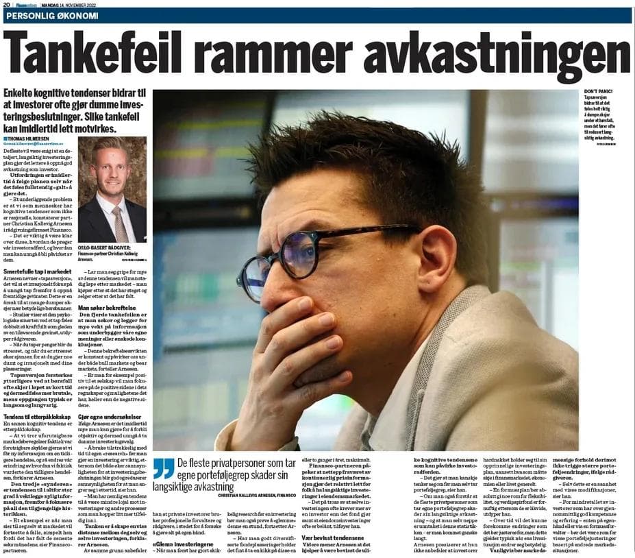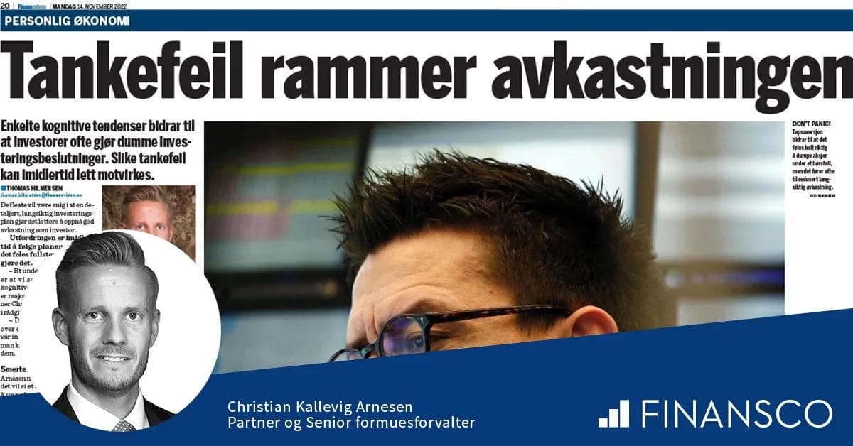 Enkelte kognitive tendenser bidrar til at investorer ofte gjør dumme investeringsbeslutninger. Slike tankefeil kan imidlertid lett motvirkes. – Et underliggende problem er at vi som mennesker har kognitive tendenser som ikke er rasjonelle, konstaterer partner Christian Kallevig Arnesen i rådgivningsfirmaet Finansco. – Det er viktig å være klar over disse, hvordan de preger vår investoradferd, og hvordan man kan unngå å bli påvirket av dem.