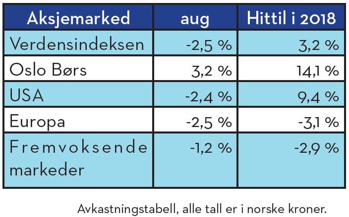 I Markedskommentar september 2018 tar vi et tilbakeblikk på de viktigste hendelsene fra august, hva dette betyr for dine investeringer samt våre forventninger til utviklingen videre.